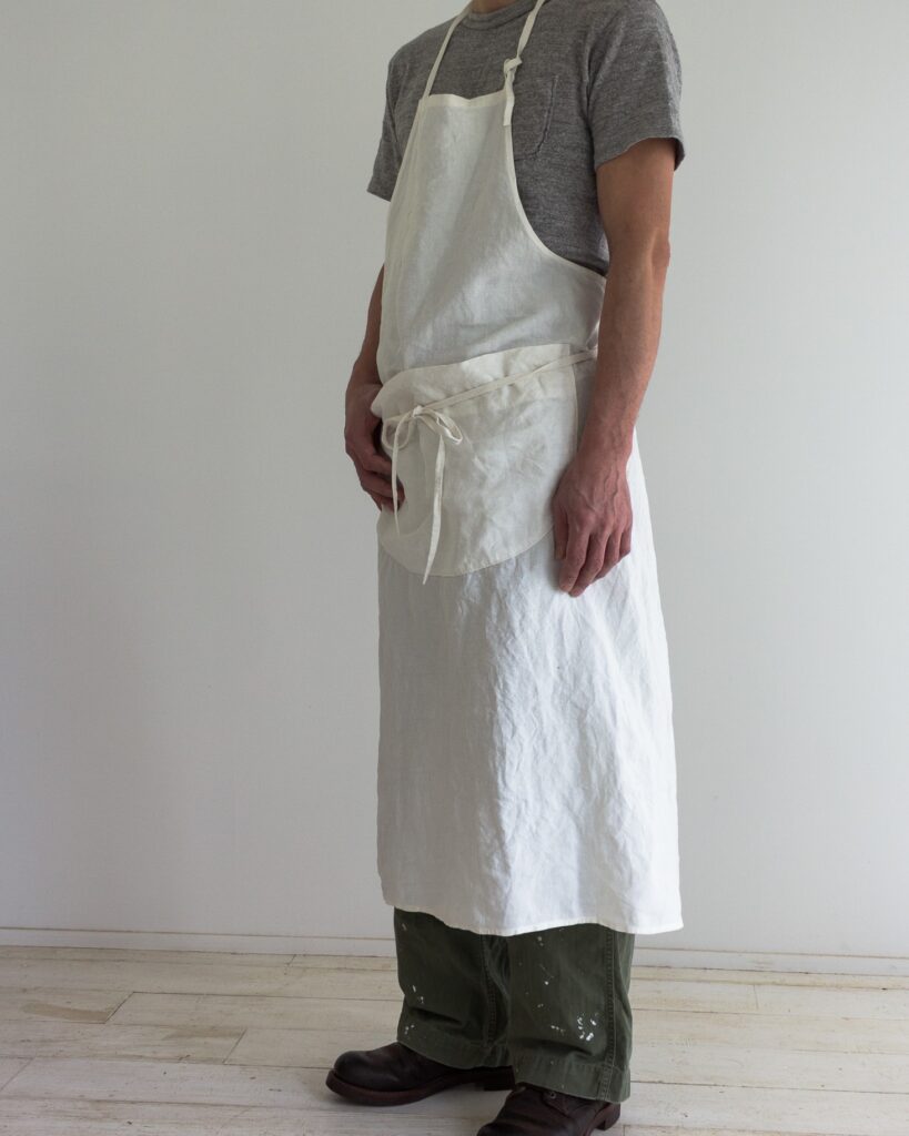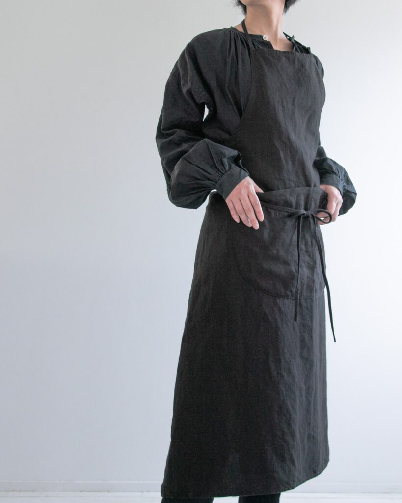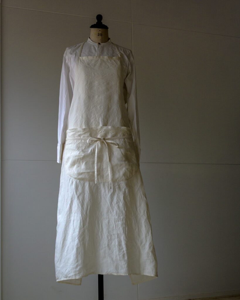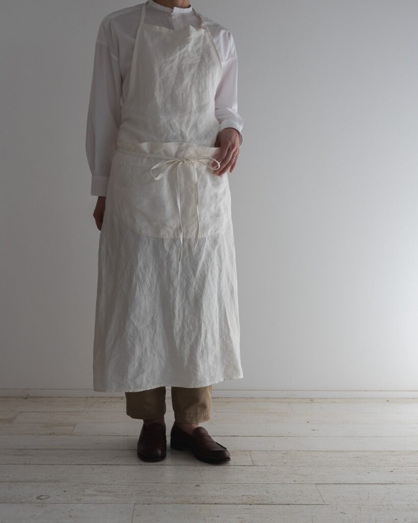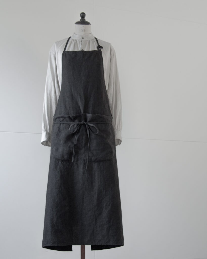 着けると凛として美しいエプロンを目指し、シルエットにとことん拘って辿りついた形です。