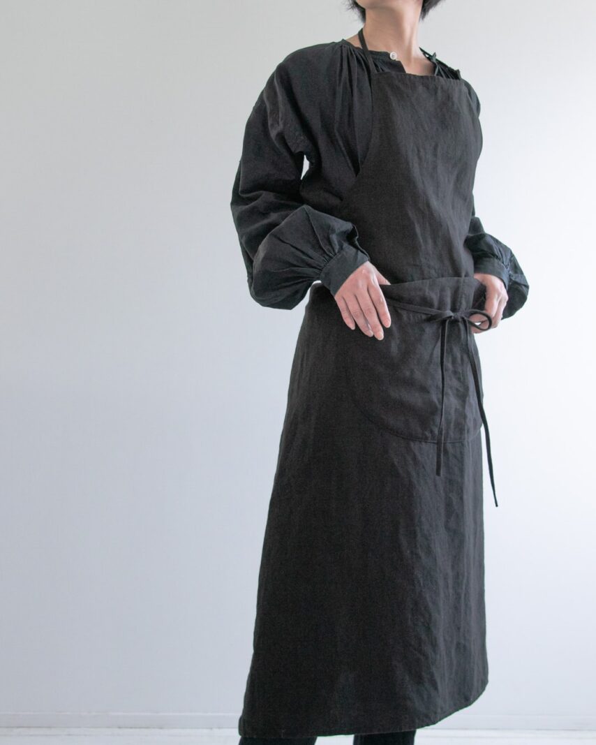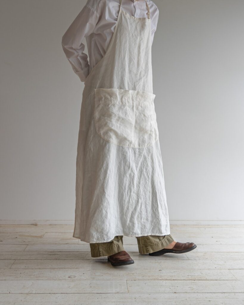 - いわゆる上質なリネンや無味無臭な感じのリネンはこのエプロンのイメージに合わないので、昔のヨーロッパで日常的に使われていたリネンのように雑味があり、やや無骨さを感じるリネンを選びました。