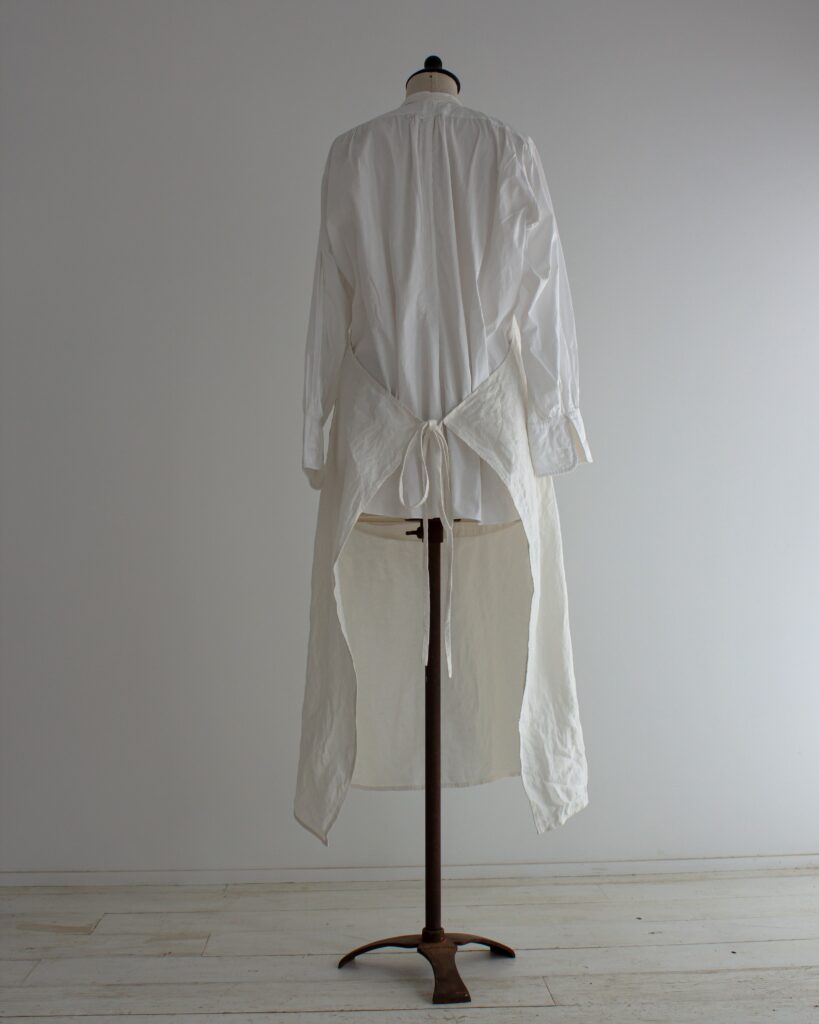 フランスのアンティークエプロンを元に、今の時代に着やすいように再構築して作ったリネンエプロン。
