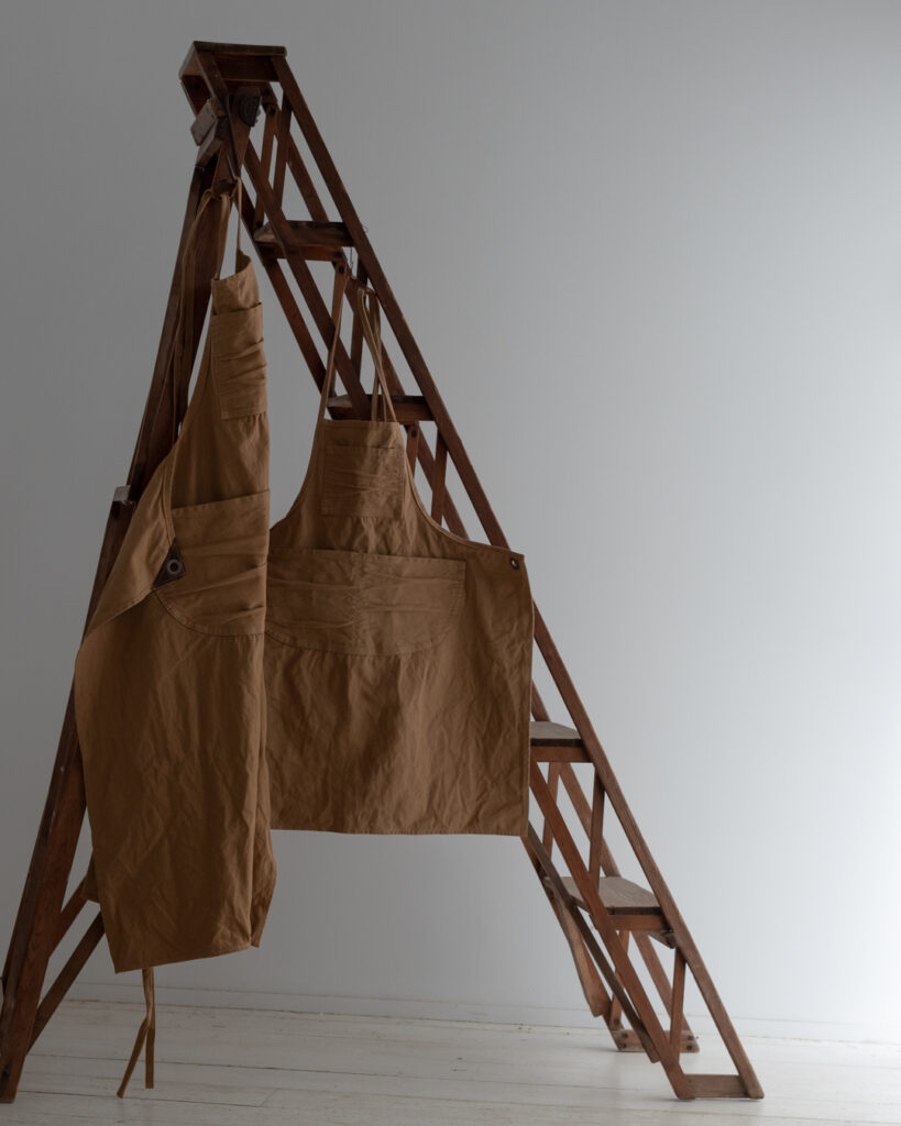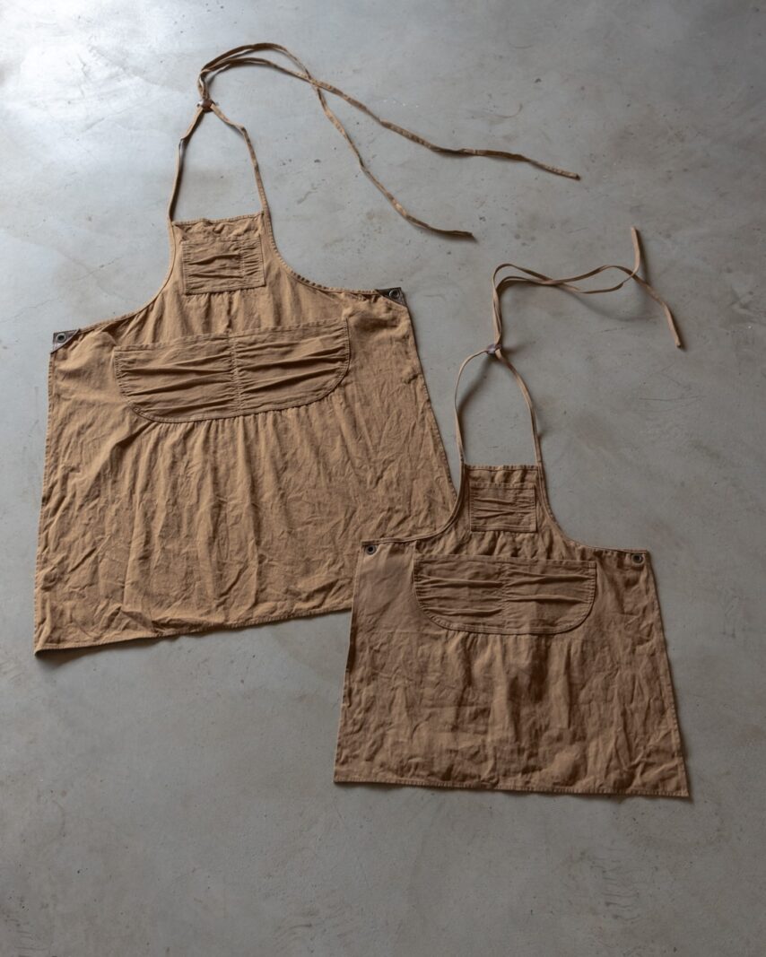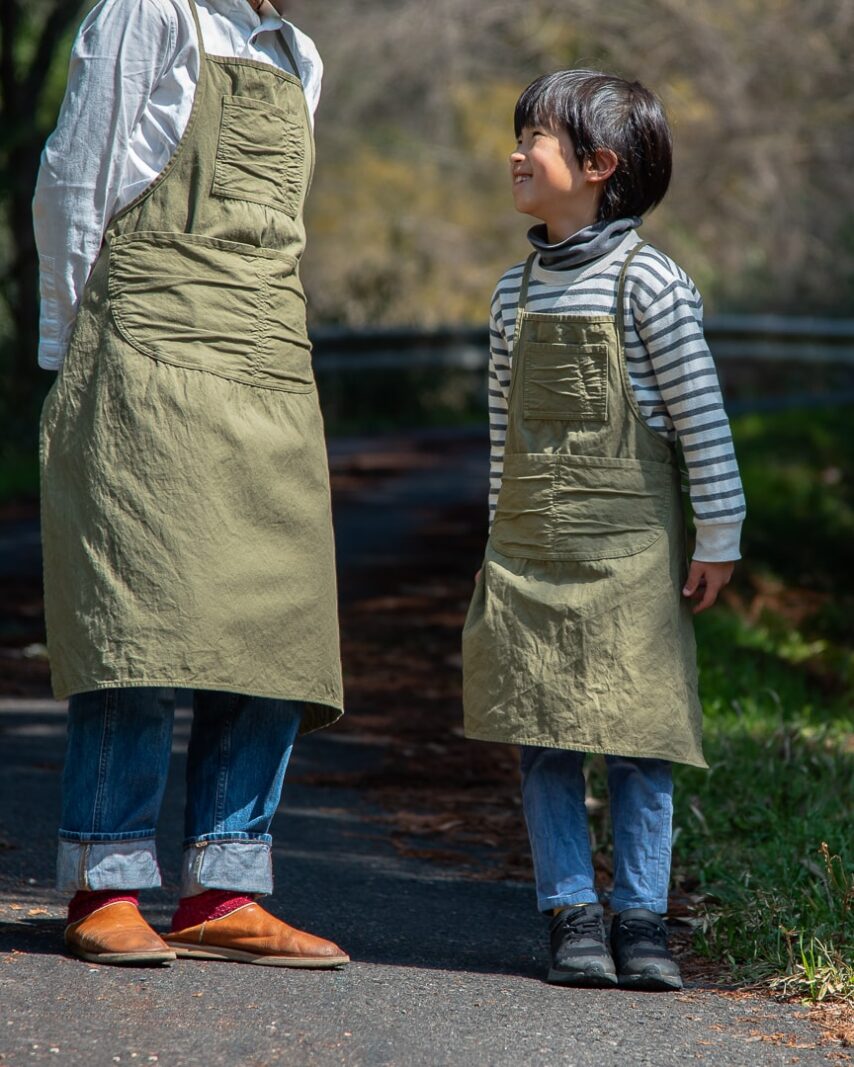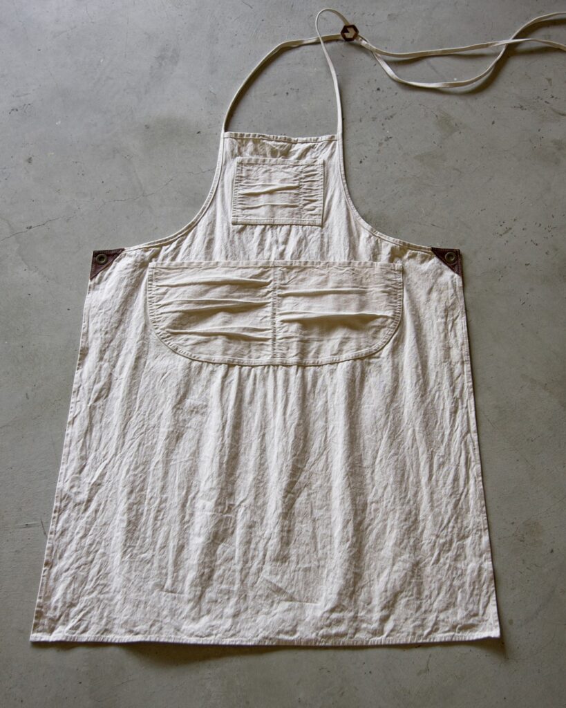 - 元型を忠実にコピーするのではなく、あくまでも「アメリカの古いワークエプロンらしさ」を再現。